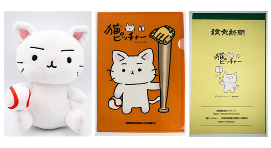 読売新聞オンラインの猫ピッチャー公式サイトで、アニメ「猫ピッチャー」の公開を始めました。また、公式LINEスタンプの新作「猫ピッチャーVol.3」の発売もスタートしました。これを記念して、主人公ミー太郎のぬいぐるみ、クリアファイル、取材メモ帳をセットで、読売IDをお持ちの方3人にプレゼントします。