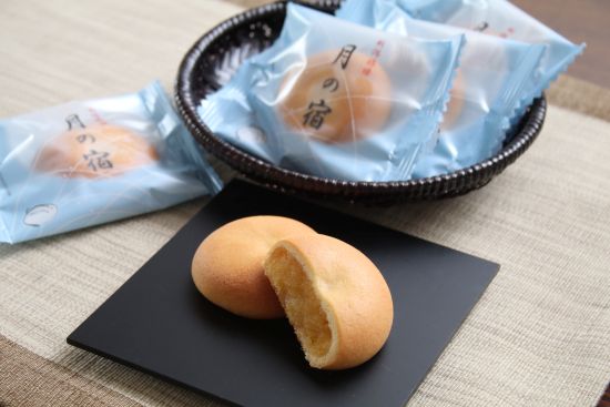 新潟の老舗和洋菓子店「大阪屋」が令和4年に発売した「月の宿」は、黄金色の紅はるか餡(あん)を月の光に見立てたお饅頭(まんじゅう)です。甘藷(かんしょ)「紅はるか」にバターや卵黄を合わせ、優しい風味、自然な甘味に仕上げました。