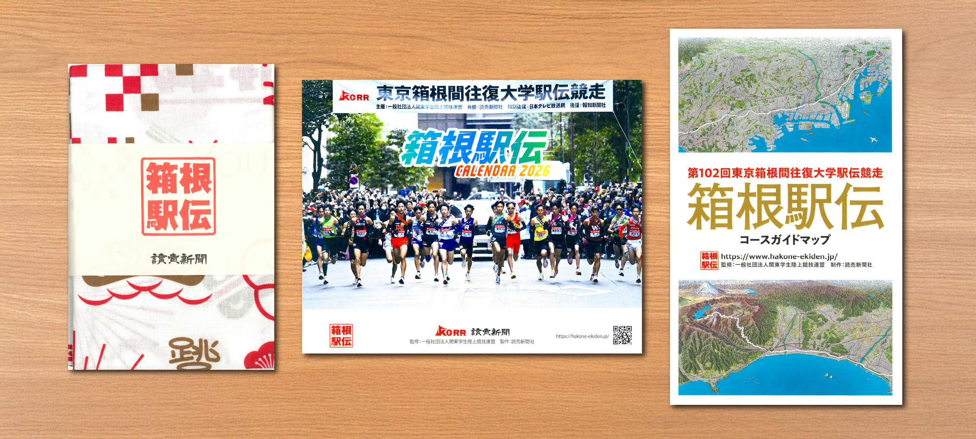 2026年1月2日(金)、3日(土)に行われる第102回箱根駅伝(東京箱根間往復大学駅伝競走)の開催に合わせて、箱根駅伝の卓上カレンダー、てぬぐい、コースマップのセットを、読売IDをお持ちの方10人にプレゼントします。