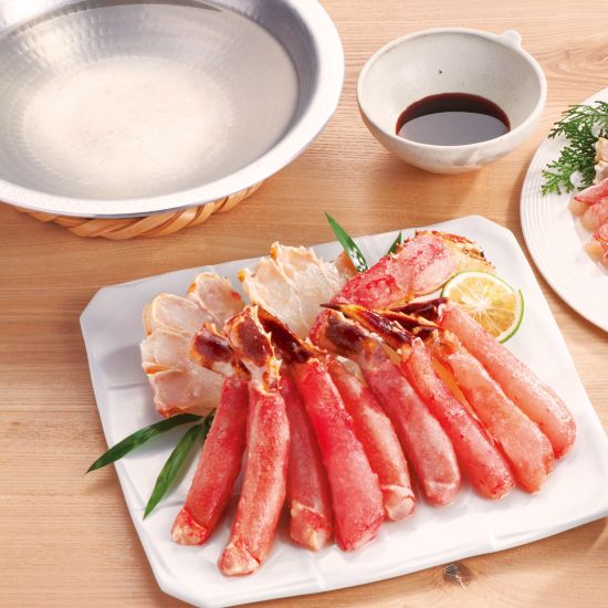 ずっしりぷりぷりの身を豪快に楽しめる「たらばがに」。いずれも、丁寧に手作業で加工したかにを急速冷凍、旨(うま)みそのままに、大正13年創業の<カネシメ高橋水産>がお届けするかにしゃぶセットです。