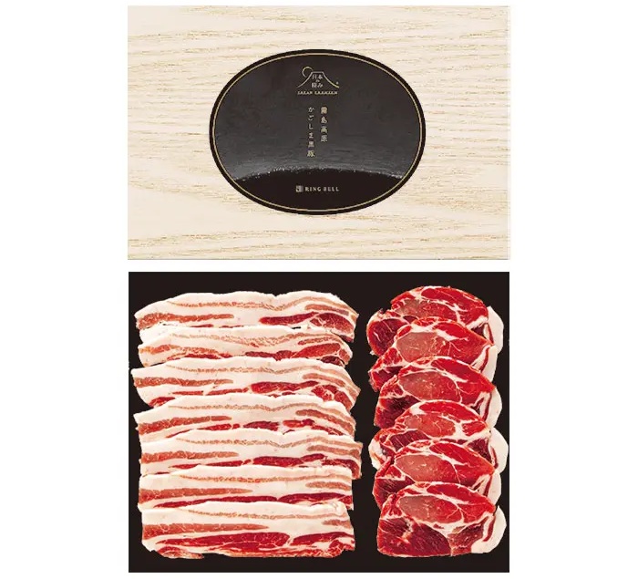「かごしま黒豚」の生産・肥育・加工・販売までを一貫して手がける霧島高原ロイヤルポーク社の自慢の逸品です。「かごしま黒豚」の中でも「薩摩(さつま)の黒い宝石」と称される同社の看板商品で、肉質はきめ細かくジューシー。歯切れがよく、旨(うま)み濃厚で、脂は上質で甘みがありながら、あと味はさっぱりとしています。